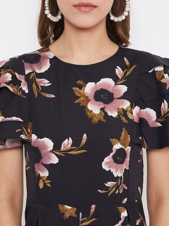 Product Name: UPTOWNIE Women's Crepe Floral Flared Sleeves Jumpsuit Package Contains: It has 1 Piece of Jumpsuit Size In Inches: 36 Color: Black Fabric: Crepe Pattern: Floral Style: Flared Jumpsuits Occasion: Casual Wash: Machine Combo/Set Of: Pack of 1 Brand: UPTOWNIE Length: Long Length Sleeve Length: Flared Sleeve Neck Type: Round Neck No Of Pockets: 2 Transparency: Opaque Weave Type: Woven Weight: 200